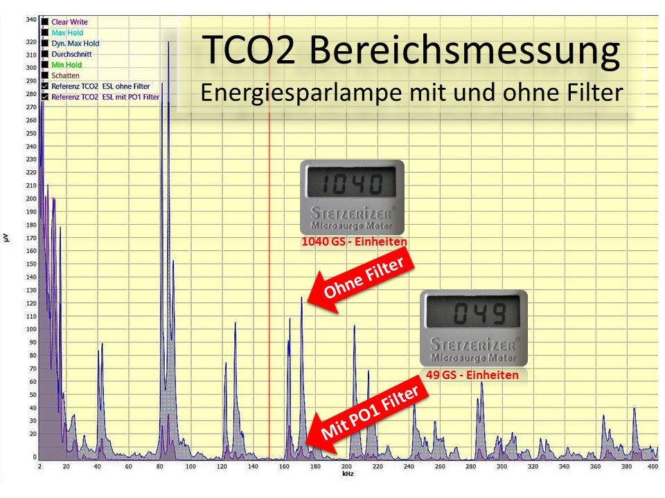 Diese technische Lösung ermöglicht eine Filterung von 4.000Hz bis weit in den Megahertzbereich. Diese Bandbreite wäre ohne unsere einzigartige Kompensationsschaltung unmöglich. Das Ergebnis ist eine extreme Reduzierung der Störfrequenzen oberhalb von 4.000Hz bis weit in den Megahertzbereich.