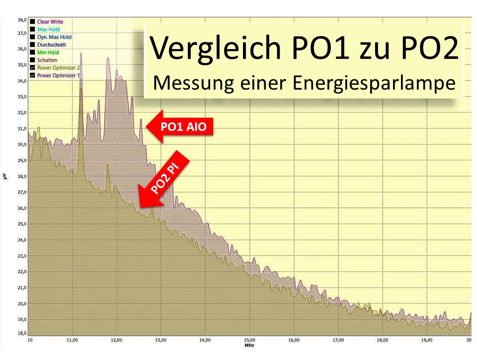 Um das Problem auf der Netzleitung zu reduzieren, verwenden wir unseren Power Optimizer. Dies ist ein großer Parallelfilter von 15uF, der mit einem Kompensationsverfahren korrigiert wurde.